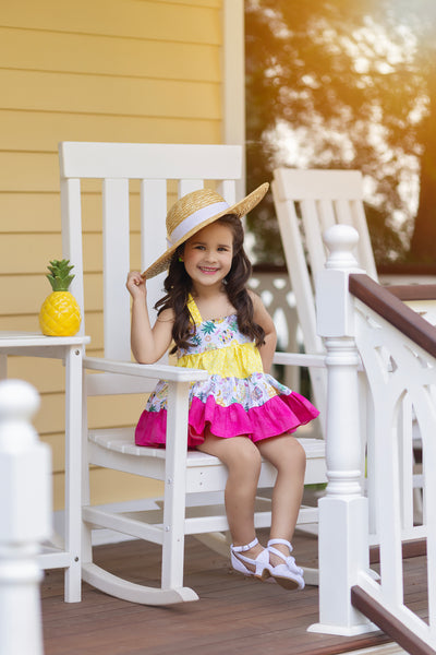 Make a tropical statement with this Pineapple Tunic Twirl Top for girls. Featuring a fun and playful pineapple design, this top is perfect for twirling and standing out from the crowd. Get ready for some fashionable fun in the sun!